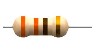 Numa caixa tinha uma peça pequena chamada RESISTOR e no meio dela tinha várias faixas coloridas pintadas. |