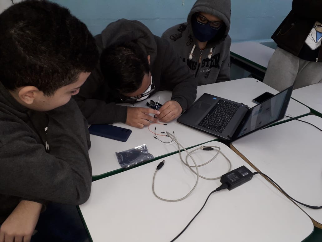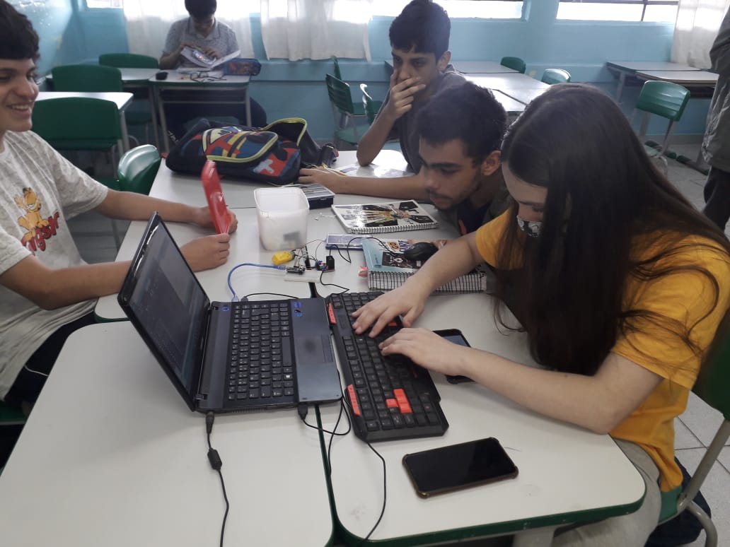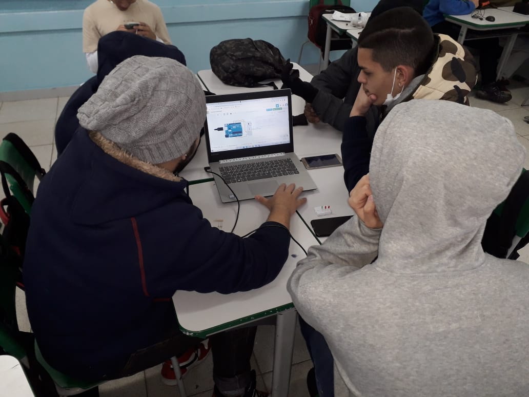 Iniciamos o trabalho de tecnologia, a partir das escolhas pelos alunos em participar dos projetos nas aulas de Eletiva. As primeiras aulas foram teóricas, sobre eletricidade e programação. Durante as aulas os alunos também estudaram alguns componentes, suas características e suas funcionalidades, como resistores, leds, sensores, placas de circuitos Arduinos, potenciômetros, motores etc. Atualmente, os projetos estão na fase de preparação dos cenários, nos quais serão demonstradas as especificidades e aplicabilidades de cada esquema. A culminância será realizada no dia 24/06/22. Nesse momento, os projetos serão exibidos para toda comunidade escolar, os alunos irão explicar os projetos, os circuitos e os códigos de programação específicos para cada apresentação.
